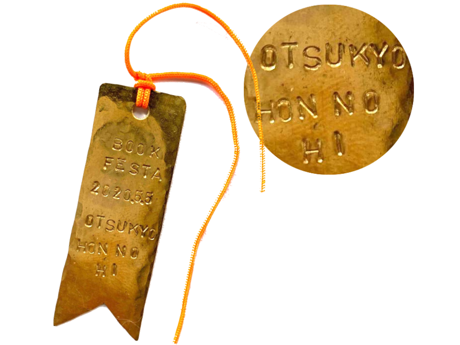 ハンマーで鎚目をつけた真鍮のしおりを作ることができます。表面の凸凹がキラキラと光を反射しとても綺麗に仕上がります。